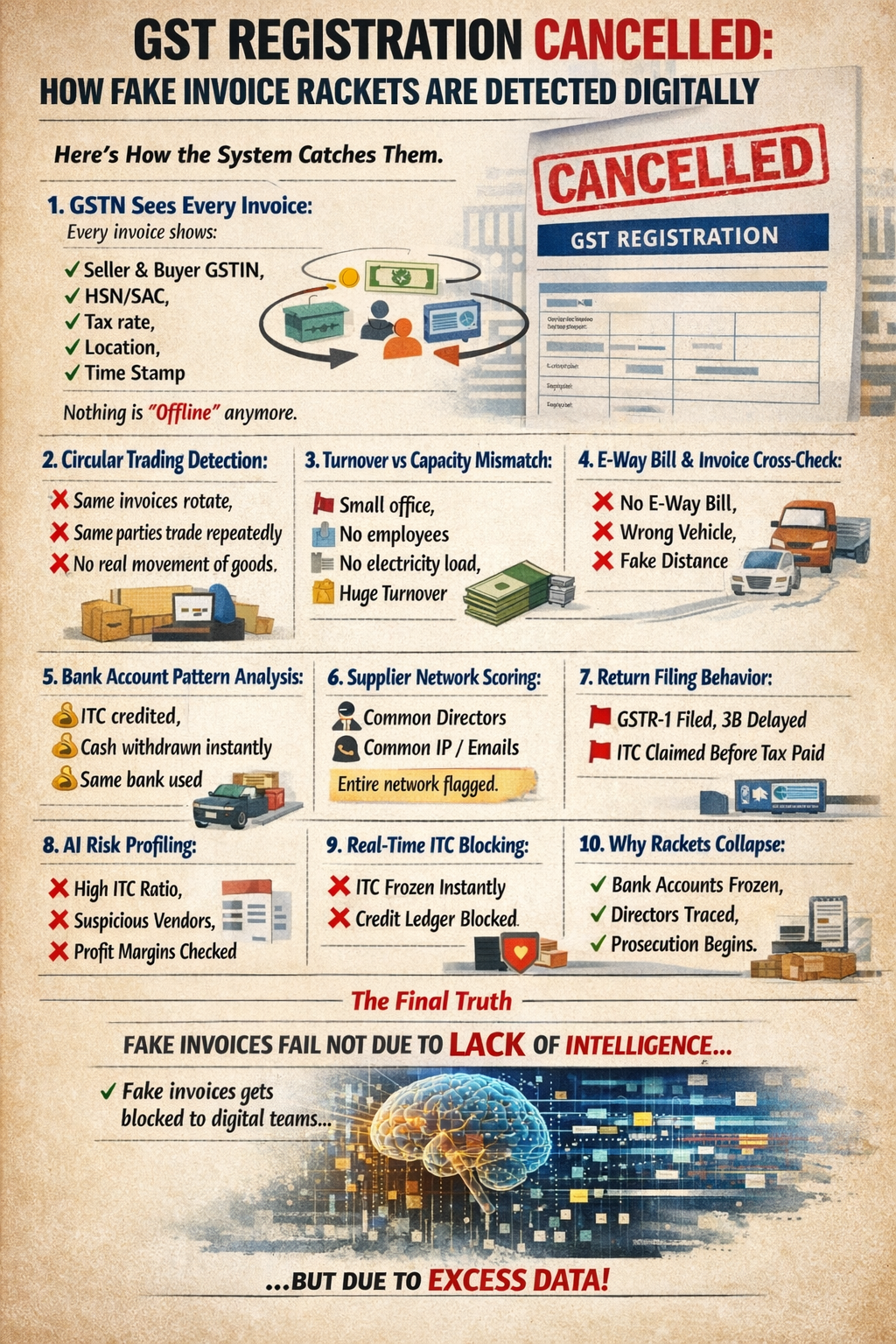 Experts conclude that fake invoices fail not because fraudsters lack intelligence, but because the GST ecosystem is now built on excess data, constant cross-verification, and automated risk analysis. In a system where every transaction leaves a digital footprint, sustained tax evasion has become increasingly difficult.