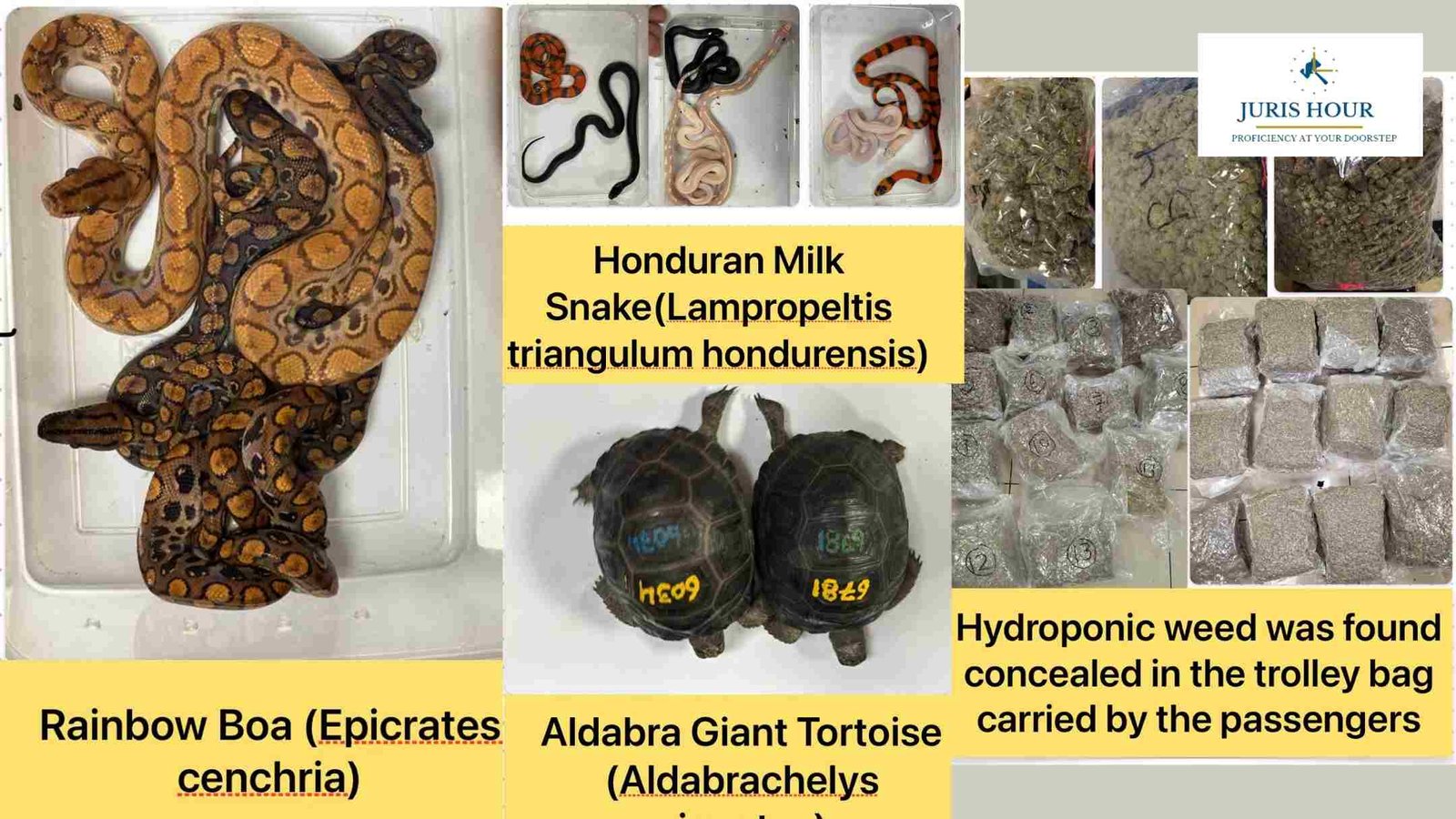In addition to the narcotics seizure, officers made a startling recovery of several exotic and protected wildlife species being smuggled into India in violation of the Wildlife (Protection) Act, 1972 and CITES (Convention on International Trade in Endangered Species) norms.