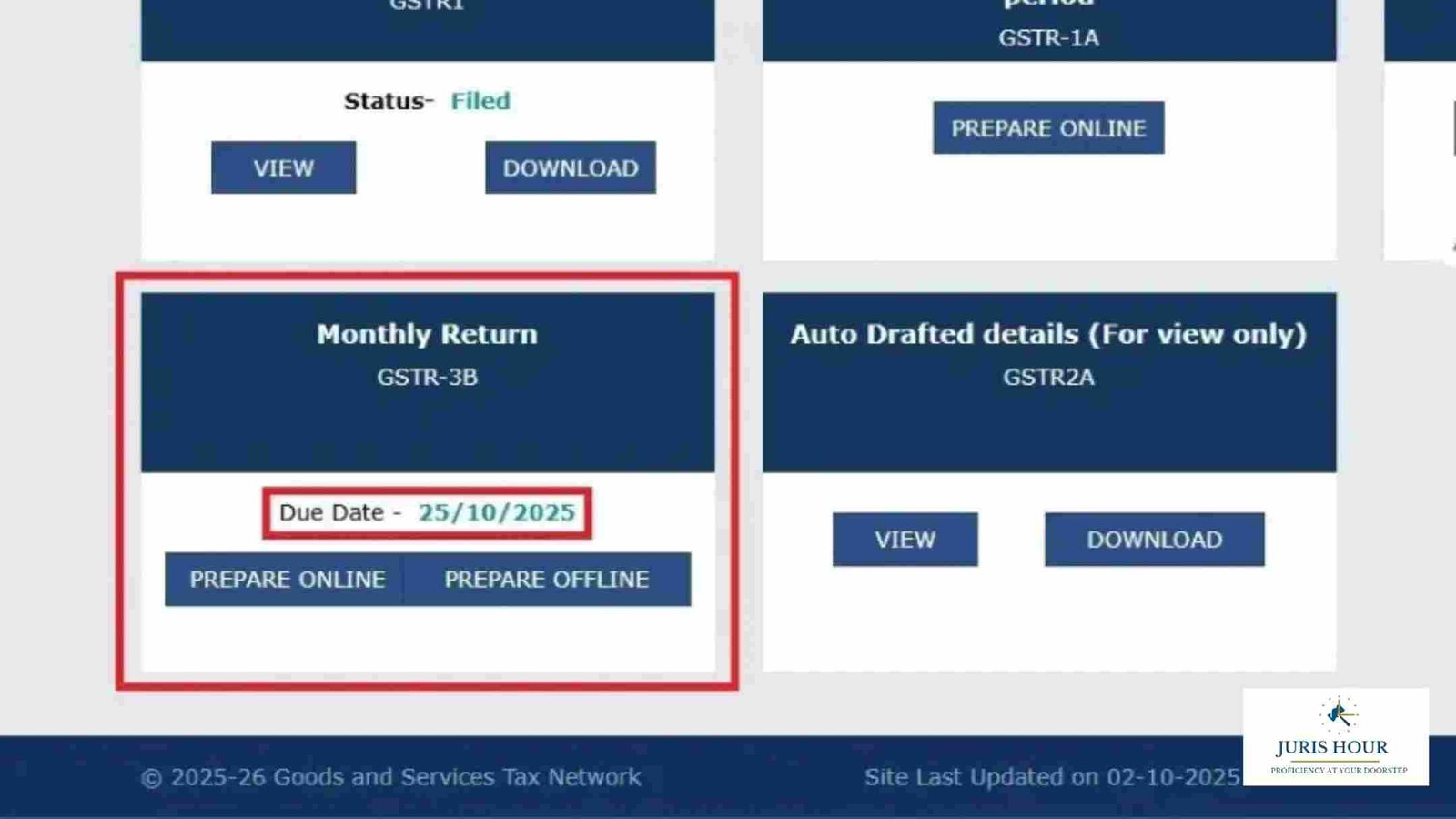 In a surprising development, the Goods and Services Tax (GST) portal on October 17, 2025, began displaying a new due date of October 25, 2025, for filing GSTR-3B, the monthly summary return filed by registered taxpayers under the GST regime. The updated date appeared under the section titled “Monthly Return – GSTR-3B” on the official portal, sparking speculation and confusion across the taxpayer community.