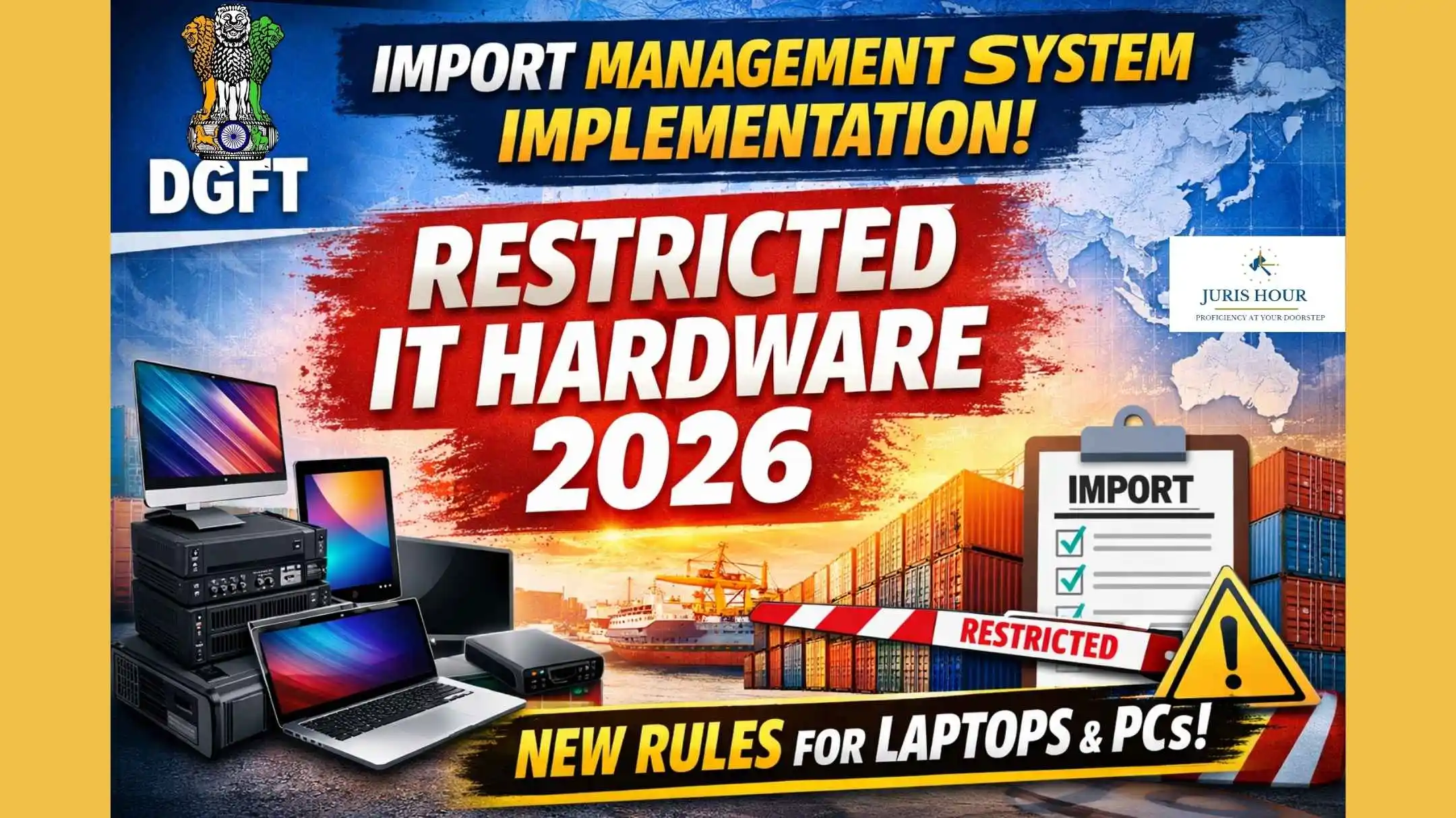 The Directorate General of Foreign Trade (DGFT) has notified the procedure for implementation of Import Management System for import of restricted IT Hardware (viz. Laptops, Tablets, All-in-one Personal Computers, Ultra small form factor computers and Servers under HSN 8471) for the calendar year 2026.